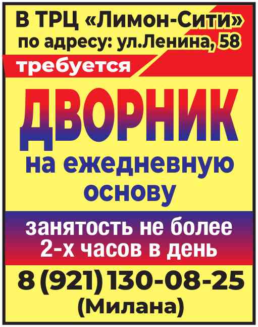 Читать далееКонтролер торгового зала 2/2, з/п от 42 000 рублей, тел: 8921-254-17-54, 8921-258-50-20 с 10.00-17.00 Первомайская, 30 А, ТЦ «Дельта» Охранница